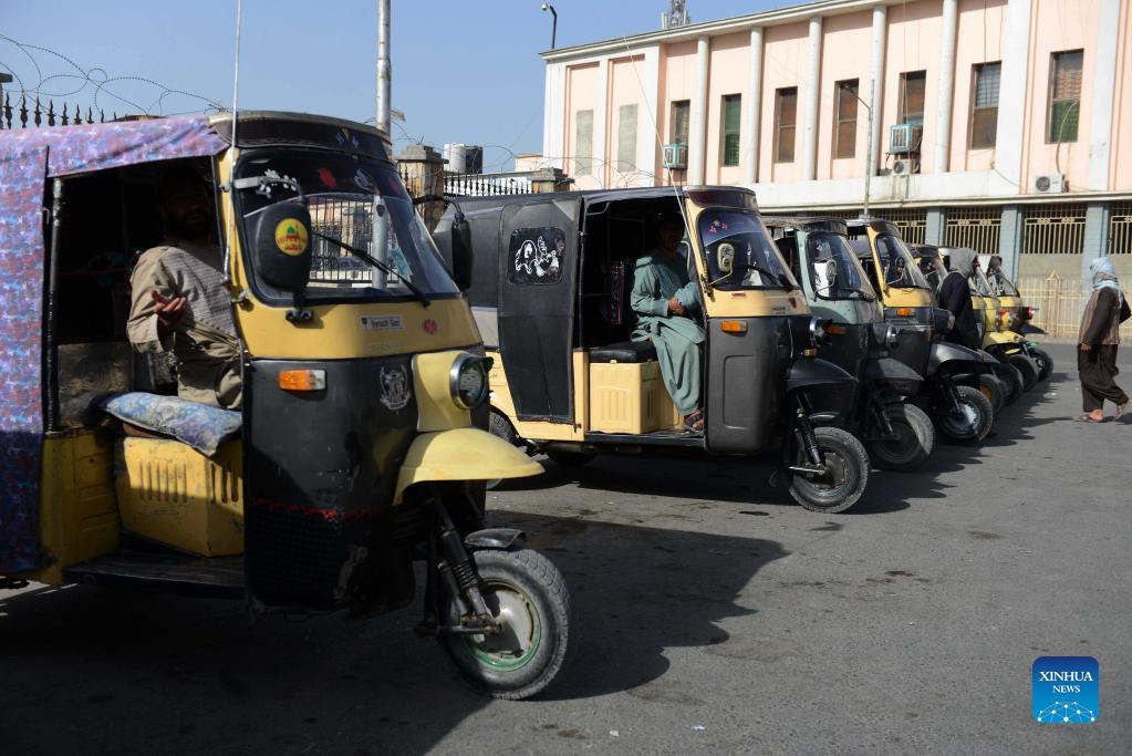 Photo taken on Sept. 14, 2021 shows rickshaws at a transport station in Kandahar city, southern Afghanistan. (Photo by Sanaullah Seiam/Xinhua)
