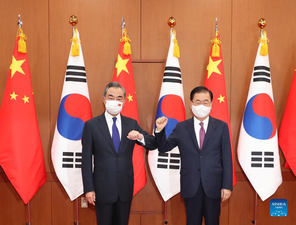 Chinese State Councilor and Foreign Minister Wang Yi (L) holds talks with South Korean Foreign Minister Chung Eui-yong in Seoul, South Korea, Sept. 15, 2021. (Xinhua/Wang Jingqiang)