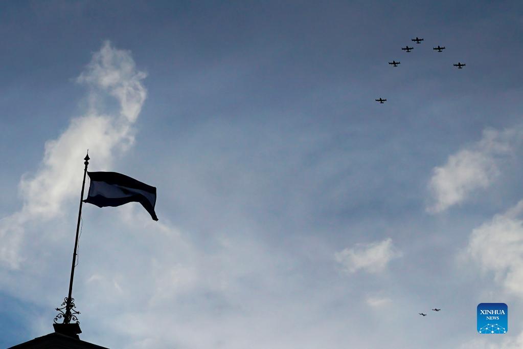 Cessna A-37 Dragonfly airplanes take part in the commemoration of the Bicentennial of Independence in Central America, in San Salvador department, El Salvador, on Sept. 15, 2021. El Salvador, Guatemala, Honduras, Nicaragua and Costa Rica commemorated the Bicentennial of Independence of Central America on Sept. 15. (Photo by Alexander Pena/Xinhua)