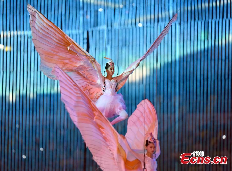 Photo taken on September 15, 2021 shows the performance during the opening ceremony of China's 14th National Games in Xi'an, Shaanxi Province. (Photo: China News Service/Sheng Jiapeng)