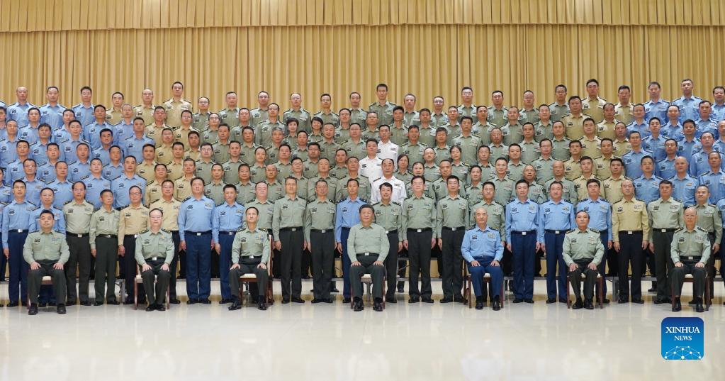 Chinese President Xi Jinping, also general secretary of the Communist Party of China Central Committee and chairman of the Central Military Commission, meets with representatives of soldiers and officers stationed in Xi'an, at a military base in northwest China's Shaanxi Province, Sept. 15, 2021. Xi inspected the military base in Shaanxi on Wednesday. (Xinhua/Li Gang)