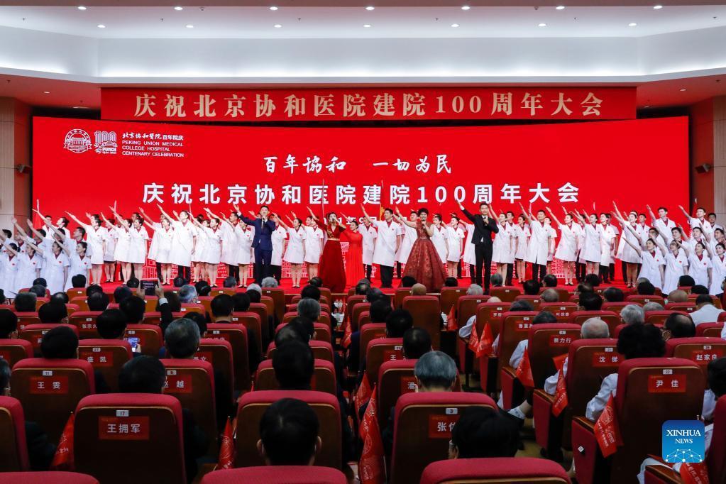 A celebration marking the 100th anniversary of the founding of Peking Union Medical College Hospital (PUMCH) is held in Beijing, capital of China, Sept. 16, 2021. (Xinhua/Zhang Yuwei)