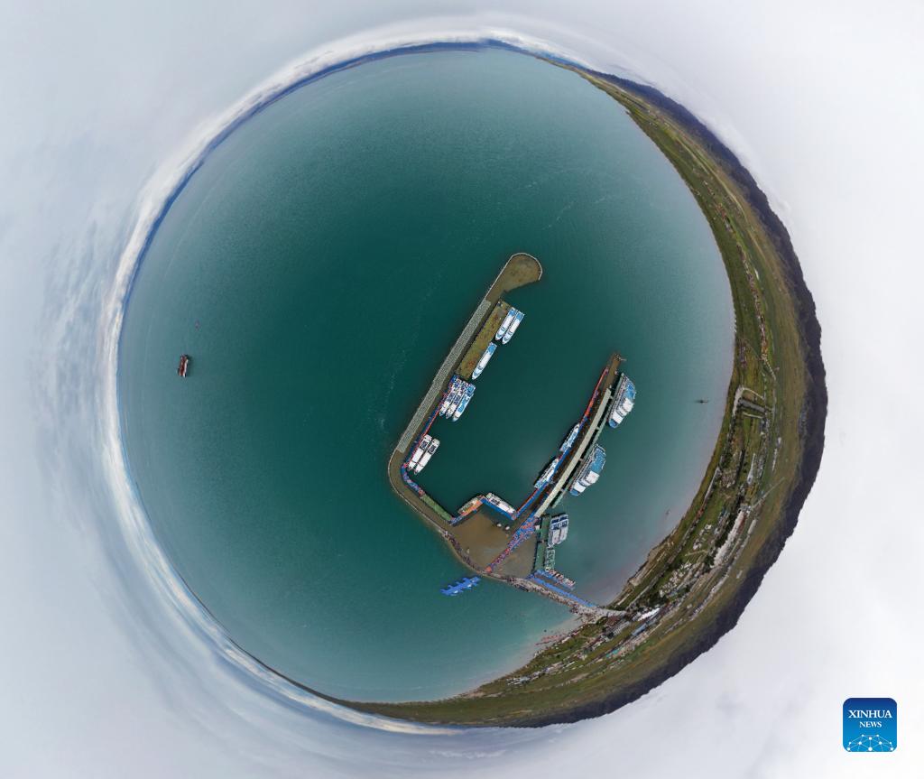 Aerial photo taken on Sept. 15, 2021 shows a panoramic view of Qinghai Lake in northwest China's Qinghai Province. Located in the northeastern part of the Qinghai-Tibet Plateau, the Qinghai Lake is key to maintaining the ecological balance in western China. It is also a natural barrier for controlling the eastward spread of desertification and ensuring the safety of agricultural areas in eastern China. In recent years, the Chinese government has implemented various ecological projects in the Qinghai Lake Basin, and achieved remarkable results in restoring the environment. (Xinhua/Xing Guangli)