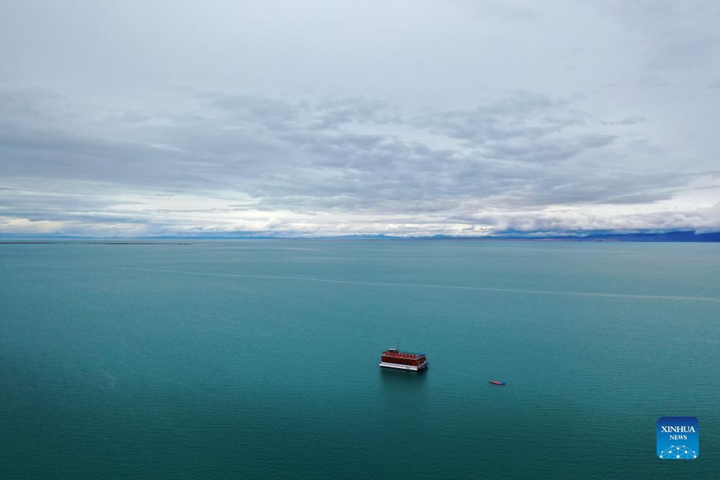 Aerial photo taken on Sept. 15, 2021 shows a view of Qinghai Lake in northwest China's Qinghai Province. Located in the northeastern part of the Qinghai-Tibet Plateau, the Qinghai Lake is key to maintaining the ecological balance in western China. It is also a natural barrier for controlling the eastward spread of desertification and ensuring the safety of agricultural areas in eastern China. In recent years, the Chinese government has implemented various ecological projects in the Qinghai Lake Basin, and achieved remarkable results in restoring the environment. (Xinhua/Xing Guangli)