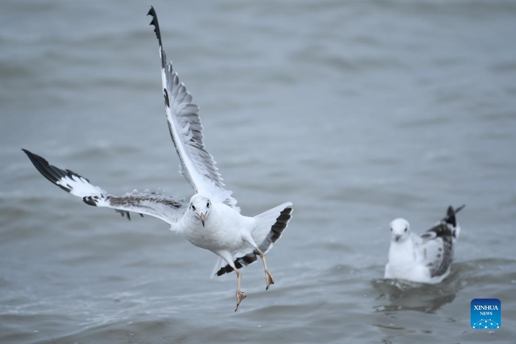 Brown-headed gulls sport on the Qinghai Lake in northwest China's Qinghai Province, Sept. 15, 2021. Located in the northeastern part of the Qinghai-Tibet Plateau, the Qinghai Lake is key to maintaining the ecological balance in western China. It is also a natural barrier for controlling the eastward spread of desertification and ensuring the safety of agricultural areas in eastern China. In recent years, the Chinese government has implemented various ecological projects in the Qinghai Lake Basin, and achieved remarkable results in restoring the environment. (Xinhua/Zhang Long)