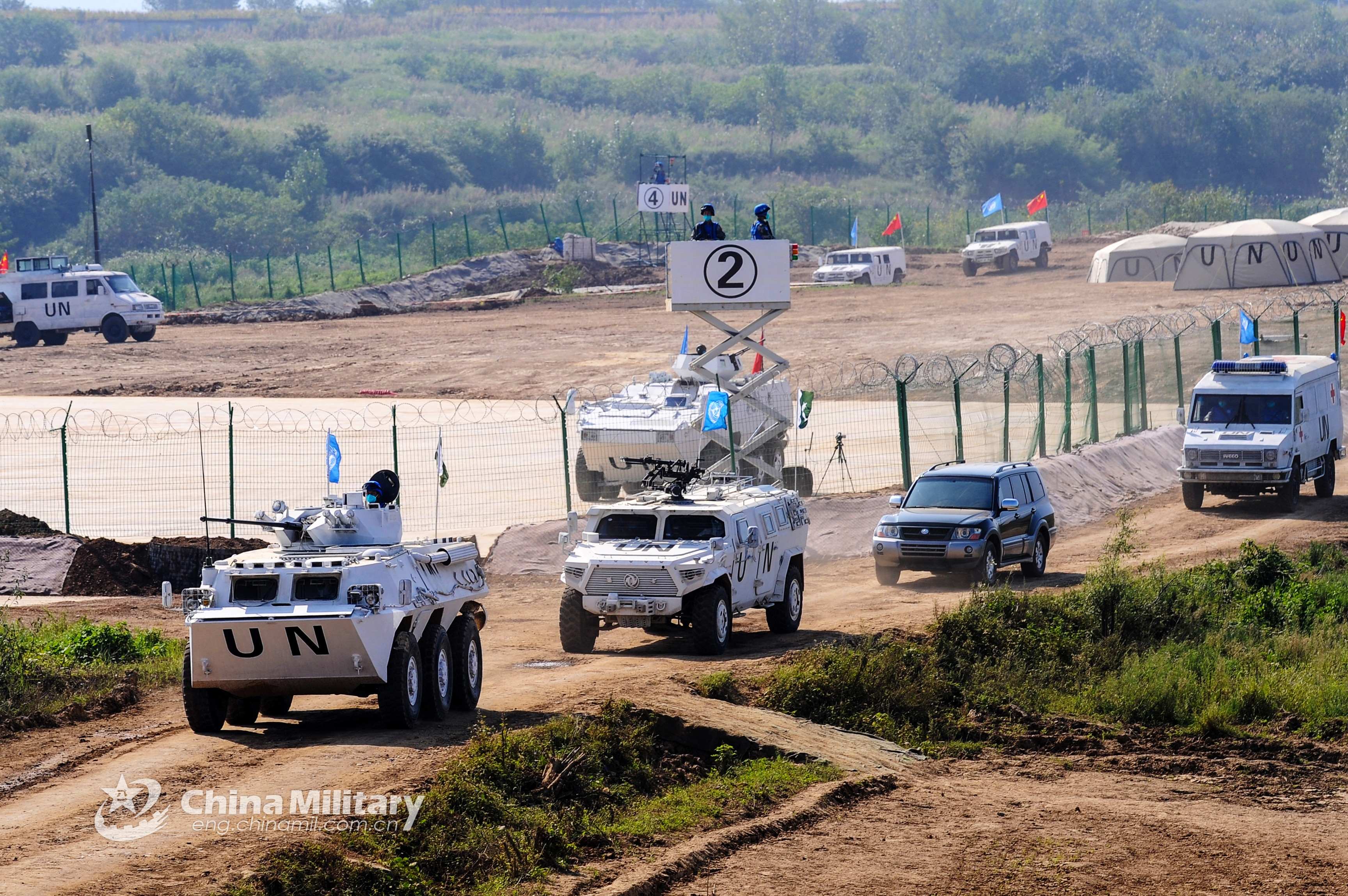Chinese and Pakistani participating troops conduct convoy escort during the final stage of Shared Destiny-2021 UN peacekeeping field training exercise held in Queshan, China's Henan Province on September 15, 2021. (eng.chinamil.com.cn/Photo by Xiao Ye)