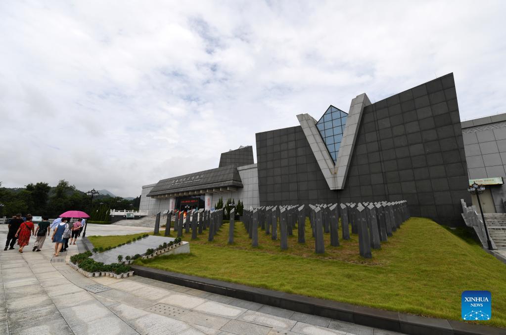 People walk toward the Museum of Kunlunguan Campaign in Nanning, capital of south China's Guangxi Zhuang Autonomous Region, Sept. 16, 2021. Kunlunguan is an important gateway and military stronghold about 50 km from Nanning. Chinese army won the Kunlunguan Victory over the Japanese troops in 1939. (Xinhua/Lu Boan)