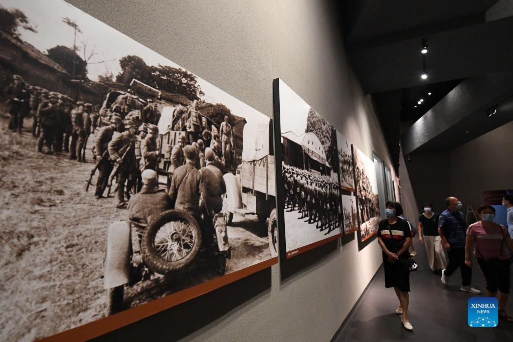 People visit the Museum of Kunlunguan Campaign in Nanning, capital of south China's Guangxi Zhuang Autonomous Region, Sept. 16, 2021. Kunlunguan is an important gateway and military stronghold about 50 km from Nanning. Chinese army won the Kunlunguan Victory over the Japanese troops in 1939. (Xinhua/Lu Boan)