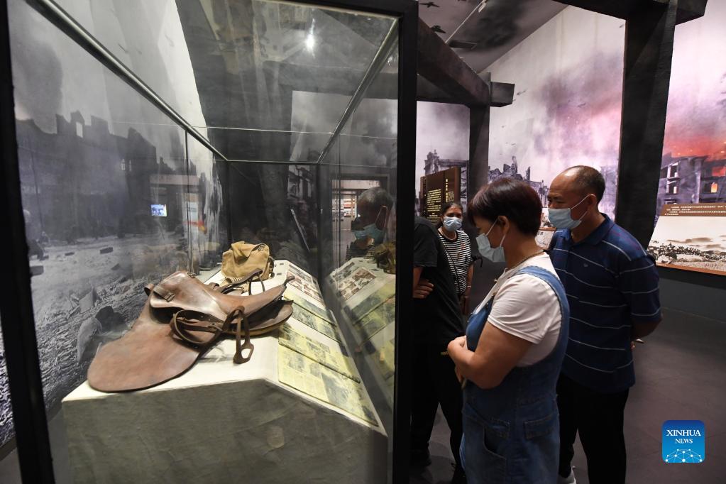 People visit the Museum of Kunlunguan Campaign in Nanning, capital of south China's Guangxi Zhuang Autonomous Region, Sept. 16, 2021. Kunlunguan is an important gateway and military stronghold about 50 km from Nanning. Chinese army won the Kunlunguan Victory over the Japanese troops in 1939. (Xinhua/Lu Boan)