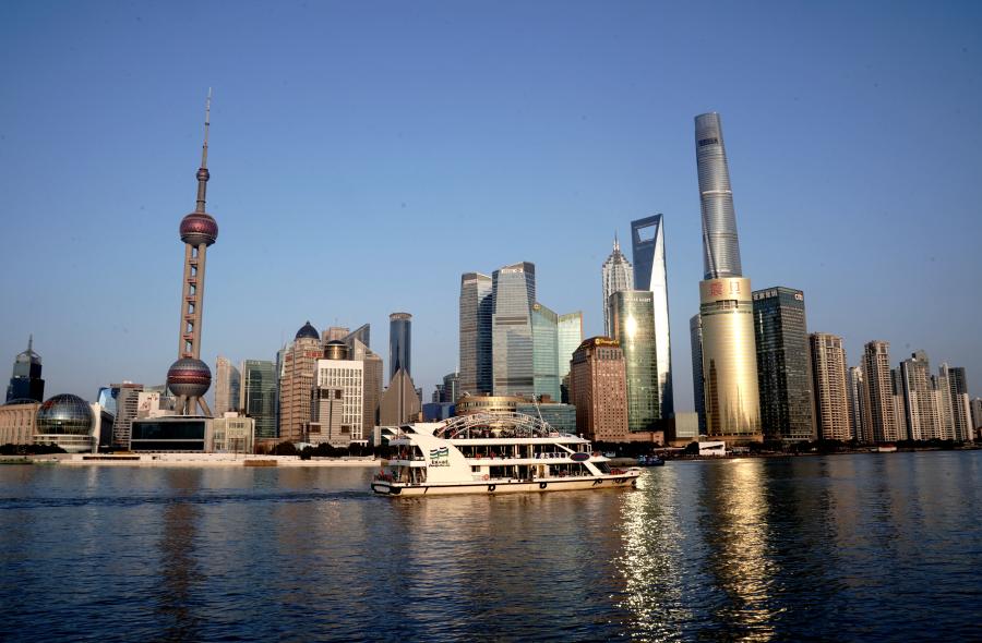 A tourist boat sails on the Huangpu River along the Bund in Shanghai on Feb. 14, 2021. (Photo: Zhang Jiansong)