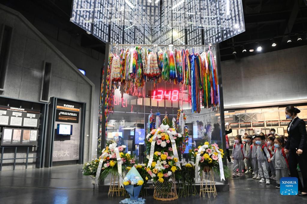 Students visit the Exhibition Hall of Evidences of Crime Committed by Unit 731 of the Japanese Imperial Army in Harbin, northeast China's Heilongjiang Province, Sept. 18, 2021. Unit 731 is a covert biological and chemical warfare research and development unit of the Japanese Imperial Army that undertook lethal human experimentation during World War II. Various activities are held on Sept. 18 in commemoration of the September 18 Incident 90 years ago that marked the start of Japan's 14-year invasion of China. (Xinhua/Wang Jianwei)