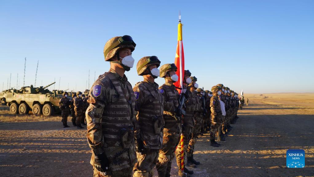 Chinese troops participate in the opening ceremony of the "Peace Mission 2021," a counter-terrorism military exercise for Shanghai Cooperation Organization (SCO) member states, at the training range in Orenburg, Russia on Sept. 20, 2021. (Xinhua/Mei Shixiong)