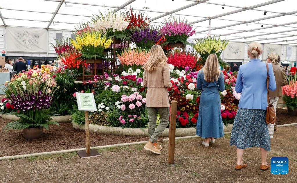 People attend the RHS (Royal Horticultural Society) Chelsea Flower Show press day in London, Britain, on Sept. 20, 2021. The annual RHS Chelsea Flower Show will open to the public here from Sept. 21 to 26. (Xinhua/Han Yan)