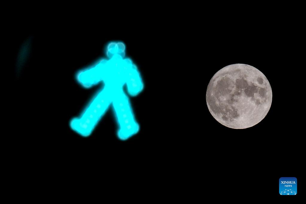 Photo taken on Sept. 20, 2021 shows a full moon in Skopje, North Macedonia. (Photo by Tomislav Georgiev/Xinhua)