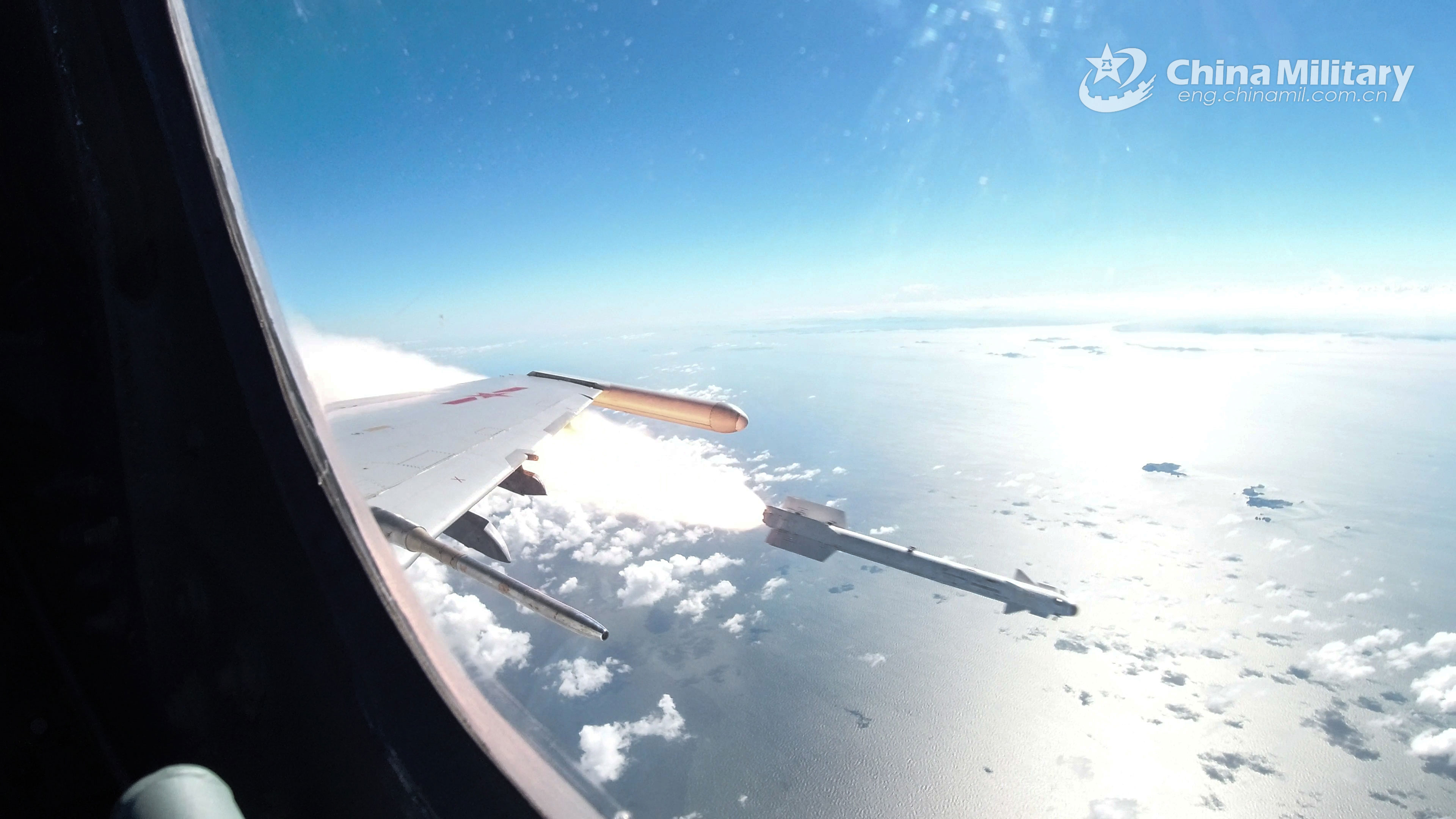 A fighter jet attached to an aviation brigade under the PLA Navy fires a missile during a round-the-clock live-fire training exercise in late August, 2021. (eng.chinamil.com.cn/Photo by Tian Jianmin)