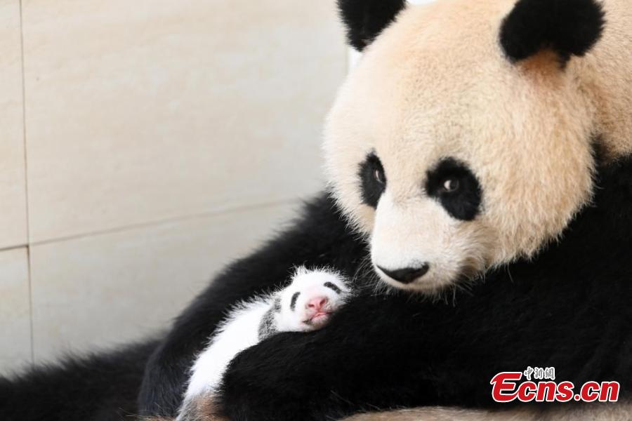 Undated photo shows newborn panda cub of Baobao is with her “foster” mother Shuixiu at Shenshuping base of China Conservation and Research Center for the Giant Panda in Wolong National Nature Reserve, southwest China's Sichuan Province. (China News Service/An Yuan)