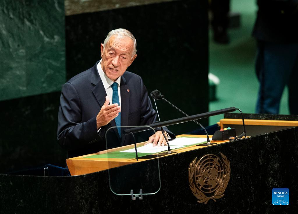 Portuguese President Marcelo Rebelo de Sousa addresses the general debate of the 76th session of the United Nations General Assembly at the UN headquarters in New York, Sept. 21, 2021. The General Debate of the 76th session of the United Nations General Assembly kicked off on Tuesday. (Xinhua/Wang Ying)