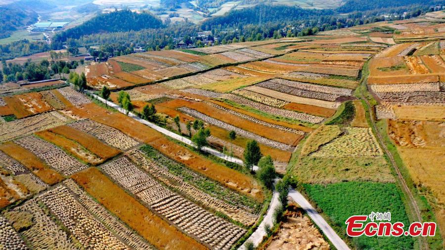 Bumper harvest presents a magnificent scene of terraced rice paddies in SW China's Luzhou city