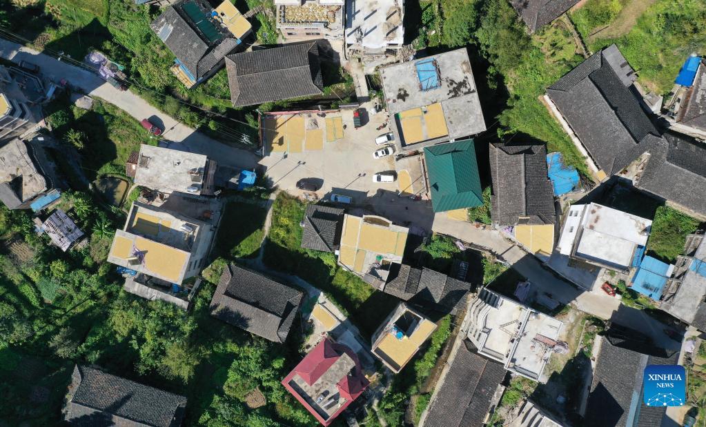 Aerial photo taken on Sept. 16, 2021 shows a residential cluster in Gandong Township of Rongshui Miao Autonomous County, south China's Guangxi Zhuang Autonomous Region. (Xinhua/Huang Xiaobang)