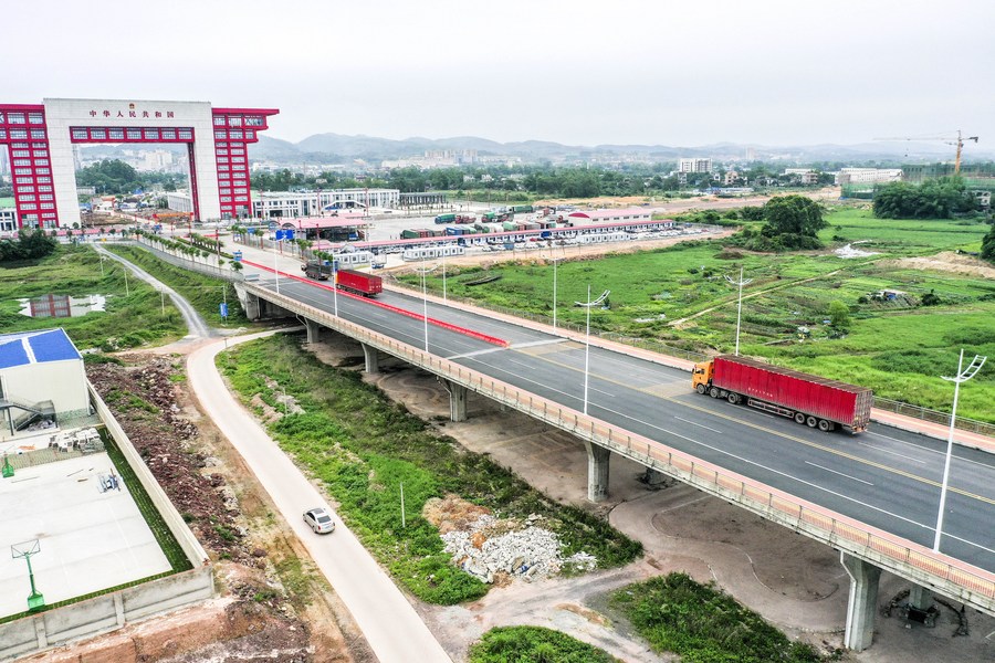 Aerial photo taken on April 15, 2019 shows the Beilun river bridge on the border of China and Vietnam. (Xinhua/Cao Yiming)