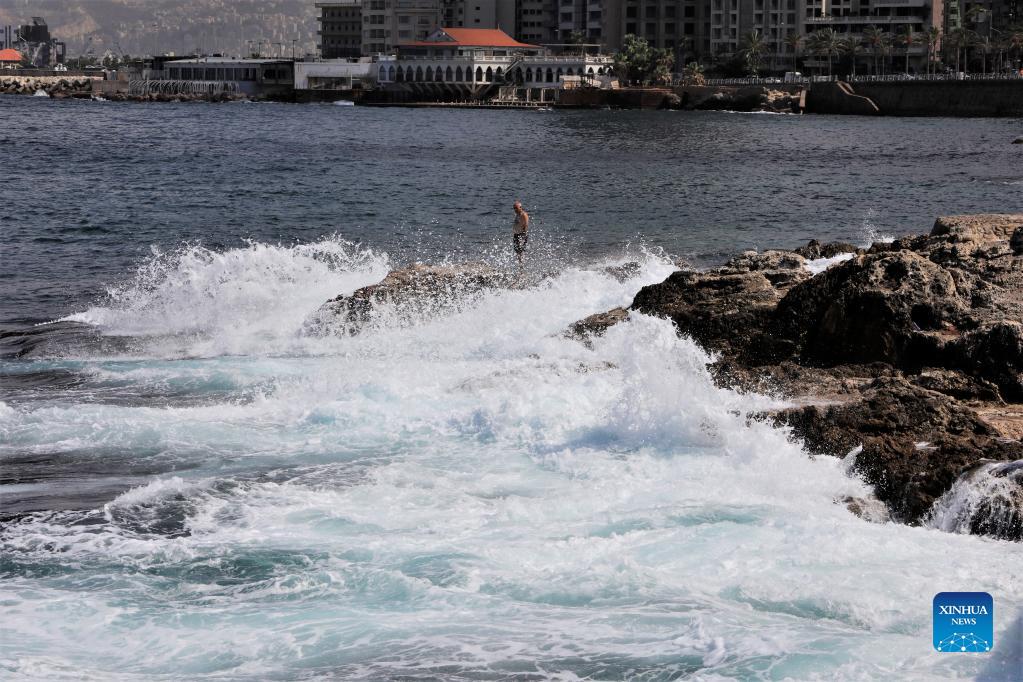Waves hit the coast in Beirut, Lebanon, on Sept. 23, 2021. (Xinhua/Liu Zongya)