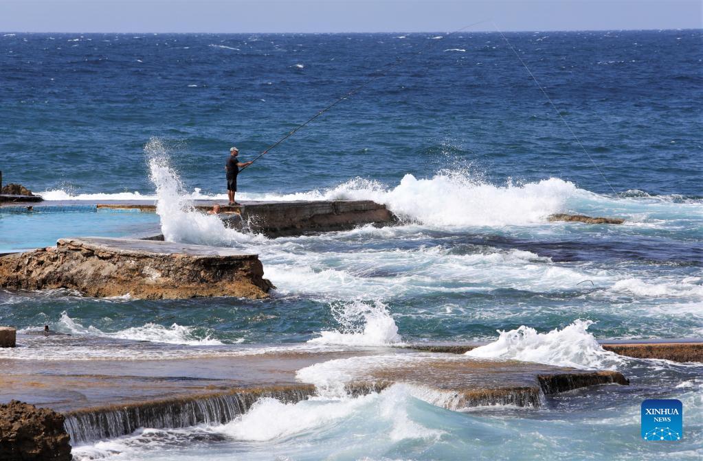Waves hit the coast in Beirut, Lebanon, on Sept. 23, 2021. (Xinhua/Liu Zongya)