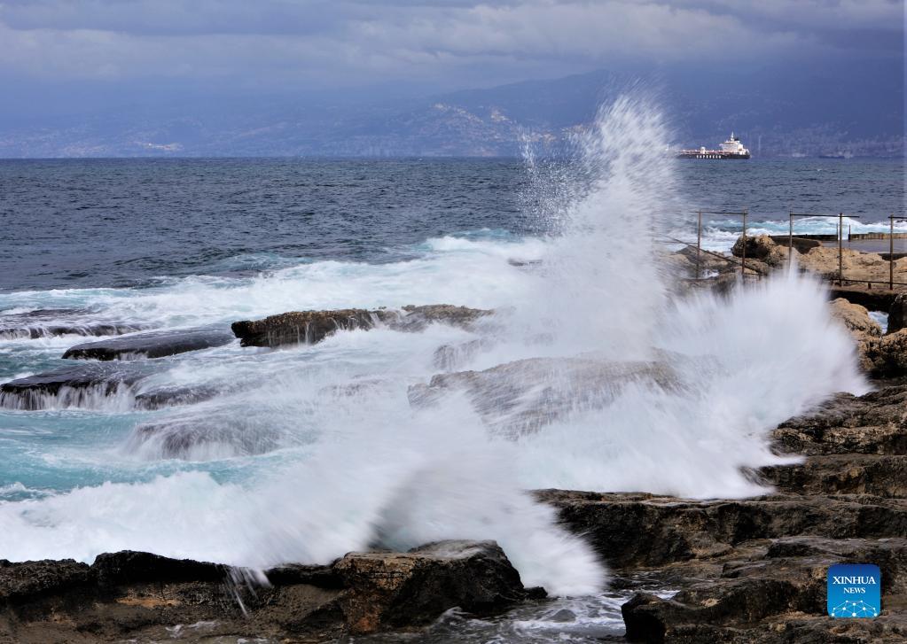 Waves hit the coast in Beirut, Lebanon, on Sept. 23, 2021. (Xinhua/Liu Zongya)
