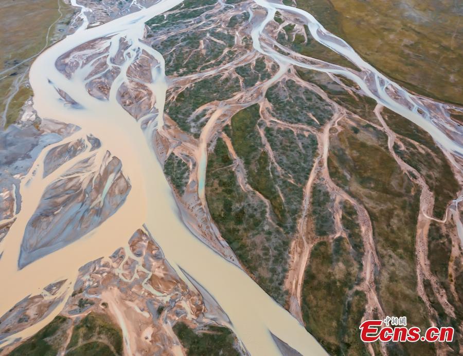 Aerial photo shows the Tongtian River, a main stream of the source of the Yangtze River in northwest China's Qinghai Province. (Photo/China News Service)