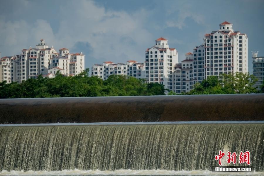 Magnificent waterfall appears on Wanquan River Dam on Sept. 25, 2021, after it rained for days in south China’s Hainan Province. (China News Service/Meng Zhongde)