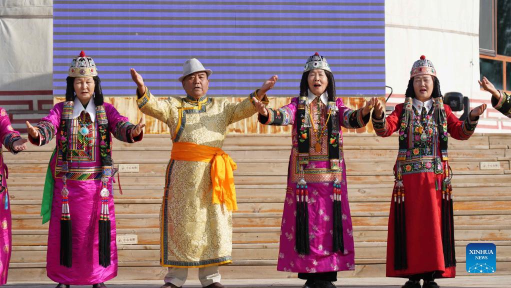 URUMQI, Sept. 26 (Xinhua) -- Wearing exquisite makeup and dressed in embroidered ethnic clothing, Janarze readies herself to show tourists the Mongolian epic of Jangar -- a task the 53-year-old looks forward to most every day.