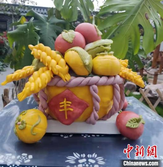 Li Lin, from a village in Luzhou district of the province’s Changzhi city, recently made such a delicate piece of artwork consisting of a granary-shaped steamed bun and some smaller steamed buns in the shapes of crops and fruits, including corns, ears of rice and persimmons, which represent a bumper harvest and an auspicious and prosperous future.
