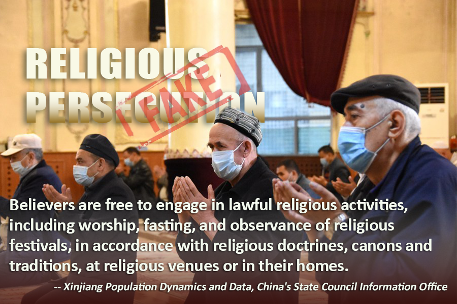 Anti-China forces have spread false accusations that Xinjiang restricts freedom of religion, keeps religious activities under surveillance, prohibits Muslims from fasting, forcibly demolishes mosques, and persecutes religious practitioners.