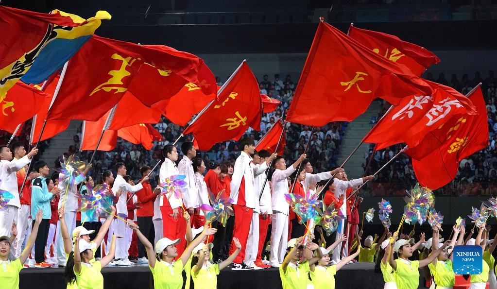 Photo taken on Sept. 27, 2021 shows the closing ceremony for China's 14th National Games in Xi'an of northwest China's Shaanxi Province. (Xinhua/Shao Rui)