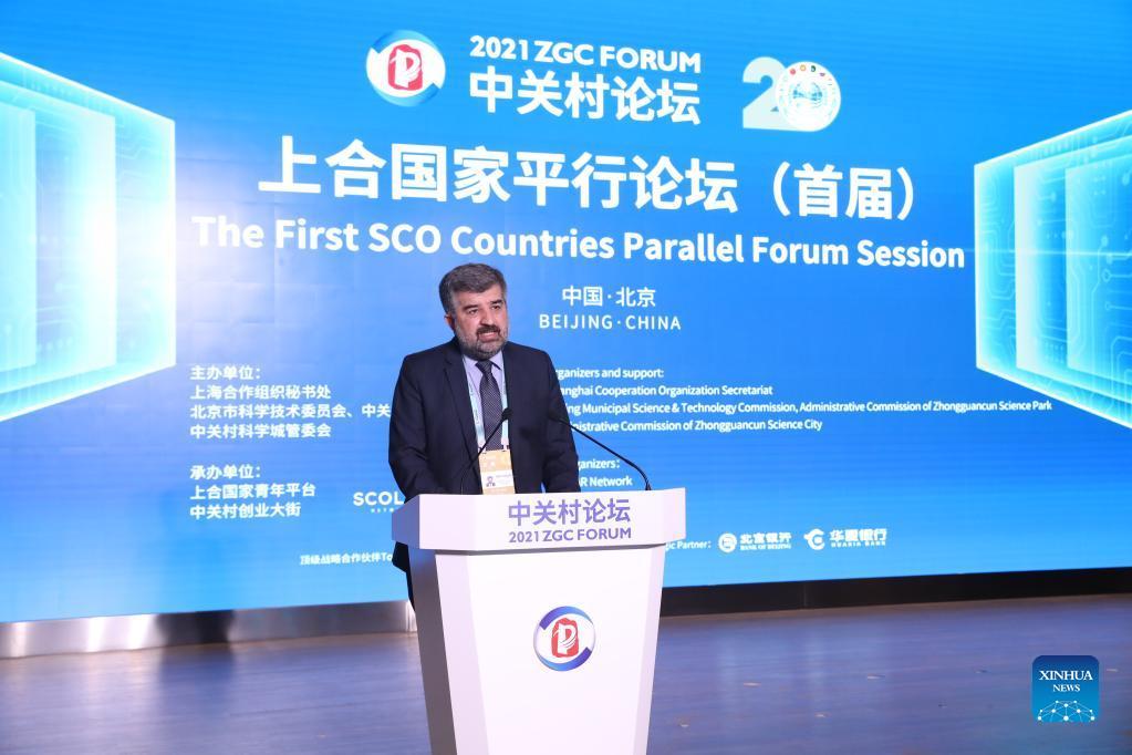 BEIJING, Sept. 27 (Xinhua) -- The ongoing Zhongguancun (ZGC) Forum in Beijing organized the First Shanghai Cooperation Organization (SCO) Countries Parallel Forum Session Sunday, calling bloc countries to cooperate closely to tackle common challenges like the COVID-19 pandemic.