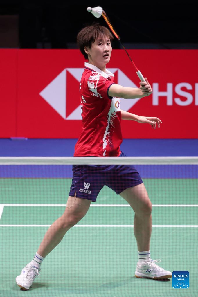 China's Chen Yufei competes against India's Aditi Bhatt in the women's singles competition during the group A match between China and India at Badminton Surdiman Cup 2021 in Vantaa, Finland, Sept. 27, 2021. (Photo by Matti Matikainen/Xinhua)