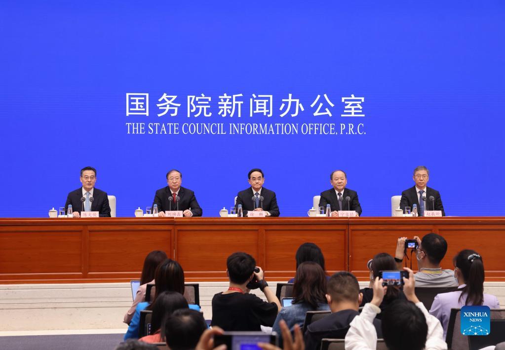 Photo taken on Sept. 28, 2021 shows a press conference held by China's State Council Information Office in Beijing, capital of China. The State Council Information Office Tuesday issued a white paper to document the country's journey to moderate prosperity. The white paper, titled "China's Epic Journey from Poverty to Prosperity," said the realization of all-round moderate prosperity, as declared in July, marks a critical step towards national rejuvenation for the country. (Xinhua/Yin Gang)