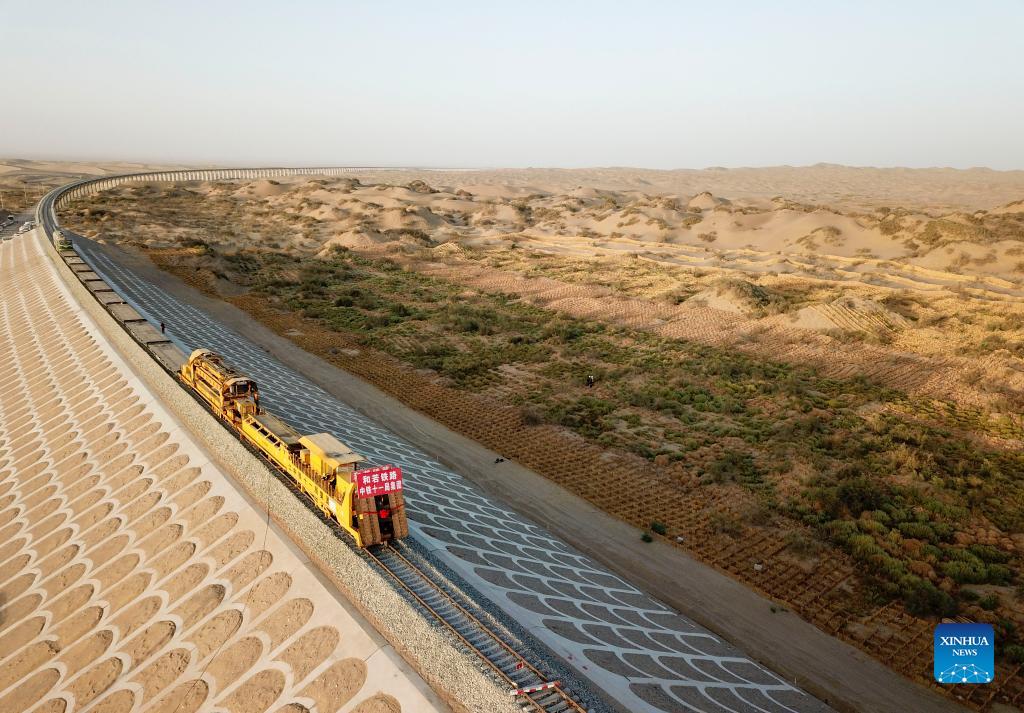 Track-laying work completed for major railway in China's Xinjiang (6)