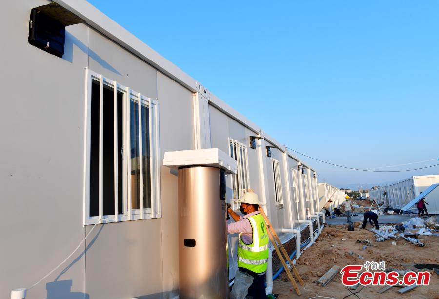 Workers build the isolation center at Ruifeng Industrial Park in Xianyou County in Putian City, east China’s Fujian Province, Sept. 27, 2021. (China News Service/Zhang Bin)