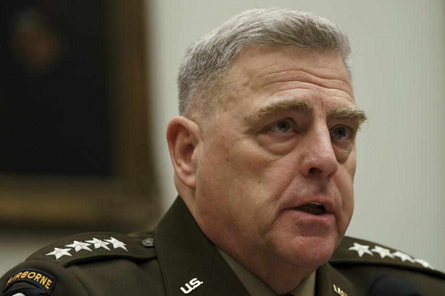 Chairman of the Joint Chiefs of Staff General Mark Milley testifies before the House Armed Services Committee during a hearing on the Fiscal Year 2021 National Defense Authorization Budget Request from the Department of Defense on Capitol Hill in Washington D.C., the United States, on Feb. 26, 2020. (Photo by Ting Shen/Xinhua)