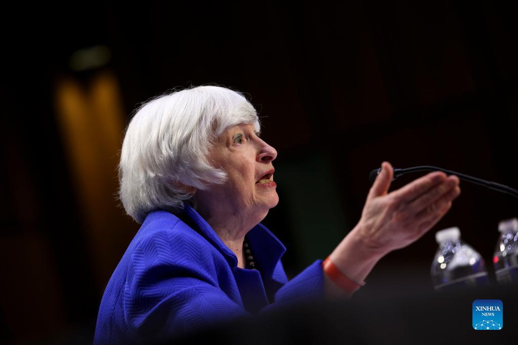 U.S. Treasury Secretary Janet Yellen testifies during a Senate Banking, Housing, and Urban Affairs Committee hearing in Washington, D.C., the United States, on Sept. 28, 2021. U.S. Treasury Secretary Janet Yellen said on Tuesday that U.S. lawmakers have until Oct. 18 to raise or suspend the debt limit before the United States is expected to default on the national debt. (Kevin Dietsch/Pool via Xinhua)