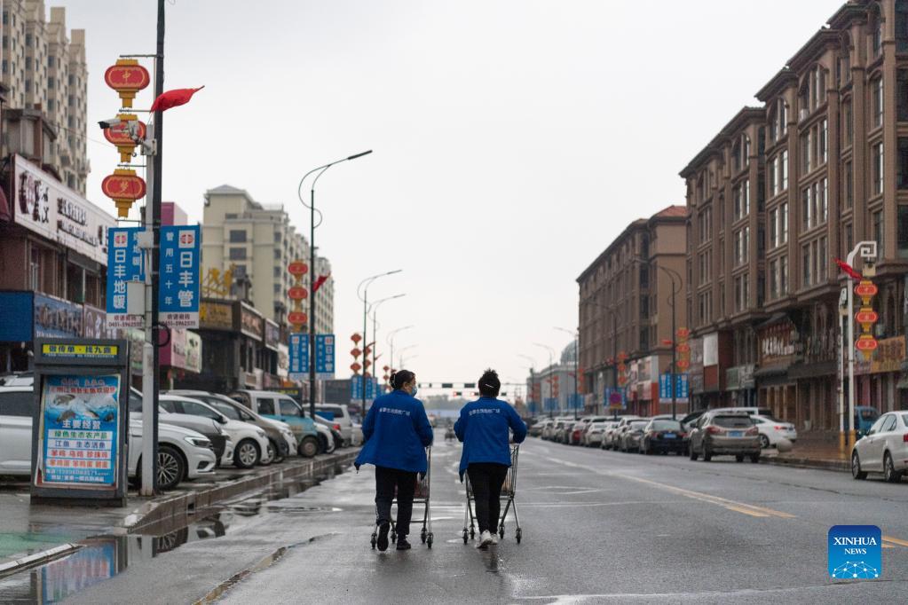 Supermarket employees deliver daily necessities to residents under close-off management in Bayan County of Harbin, northeast China's Heilongjiang Province, Sept. 27, 2021. Local authorities have prioritized delivery services to ensure the supply of necessities for residents under close-off management. The pricing of commodities remains stable in the county. (Xinhua/Wang Jianwei)