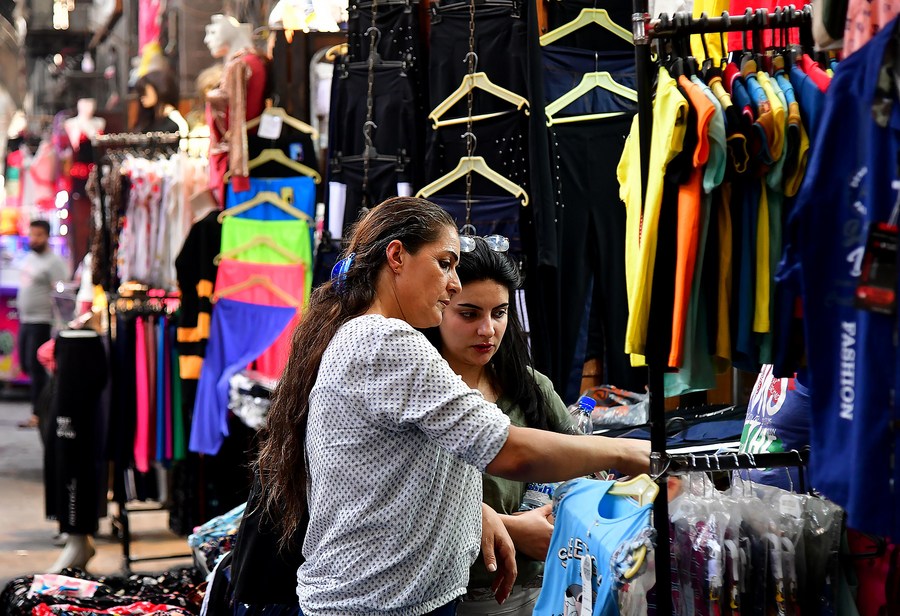 People shop at a market in Damascus, Syria, July 13, 2021. (Photo by Ammar Safarjalani/Xinhua)