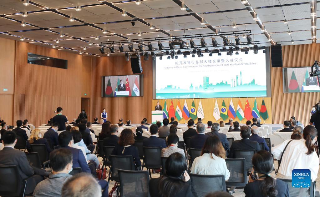 A handover &move-in ceremony of the New Development Bank (NDB) headquarters building is held in Shanghai, east China, Sept. 28, 2021. (Xinhua/Fang Zhe)