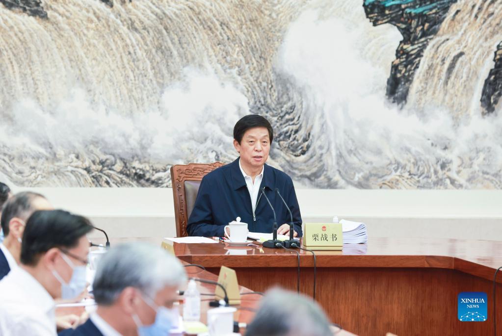 Li Zhanshu, chairman of the National People's Congress (NPC) Standing Committee, presides over a meeting of the Council of Chairpersons of the NPC Standing Committee at the Great Hall of the People in Beijing, capital of China, Sept. 28, 2021. (Xinhua/Ding Lin)