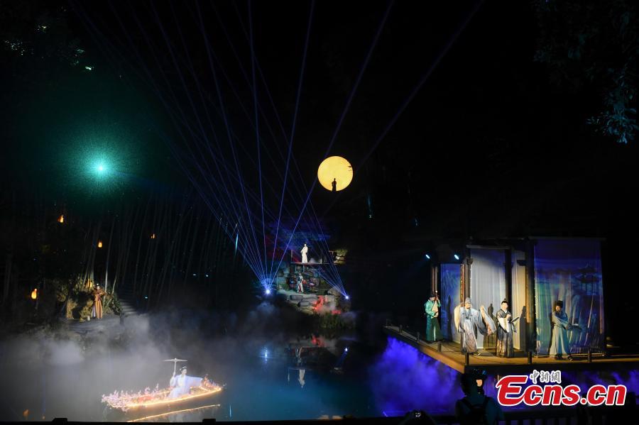 A 5D immersive light show displaying renowned poetry of Tang Dynasty (618-907) and the iambic verses of Song Dynasty (960-1279) debuts at a cultural industrial park in Changsha, China's Hunan Province, Sept. 28, 2021. (China News Service/Yang Huafeng)