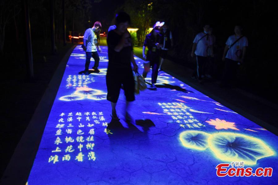 A 5D immersive light show displaying renowned poetry of Tang Dynasty (618-907) and the iambic verses of Song Dynasty (960-1279) debuts at a cultural industrial park in Changsha, China's Hunan Province, Sept. 28, 2021. (China News Service/Yang Huafeng)