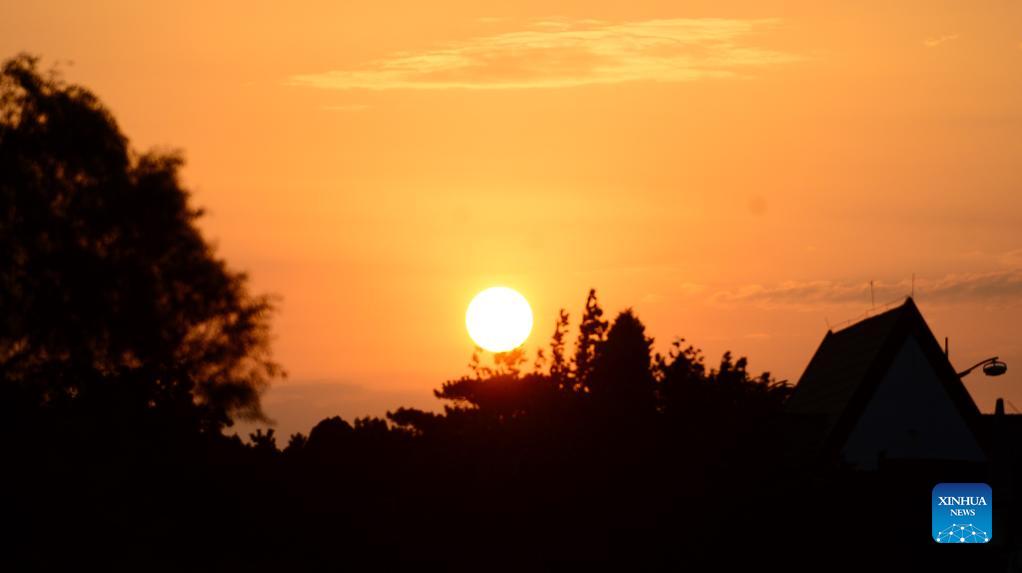 Photo taken on Oct. 1, 2021 shows sunrise in Beidaihe District of Qinhuangdao, north China's Hebei Province. (Xinhua/Jin Haoyuan)