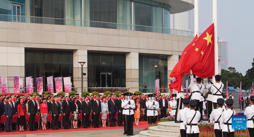 Flag-raising ceremonies were held in the Liaison Office of the Central People's Government in the HKSAR, the Office for Safeguarding National Security of the Central People's Government in the HKSAR, and the Office of the Commissioner of the Chinese Foreign Ministry in the HKSAR.