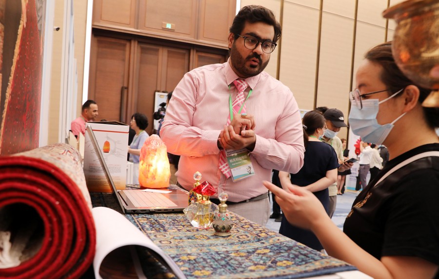 At a matchmaking session for buyers and exhibitors to meet ahead of the expo, Rehman's products successfully aroused interest among merchants from across China, which has boosted his confidence.