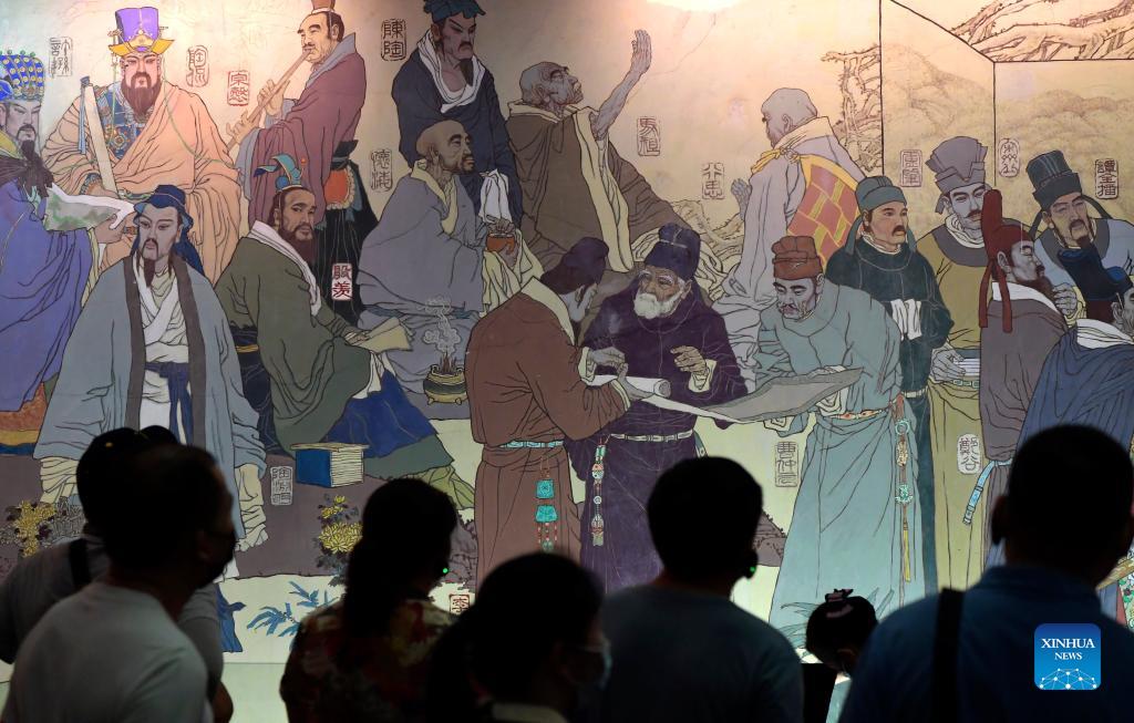 People visit an exhibition hall at the Tengwang Pavilion in Nanchang, capital of east China's Jiangxi Province, Oct. 5, 2021. (Xinhua/Peng Zhaozhi)
